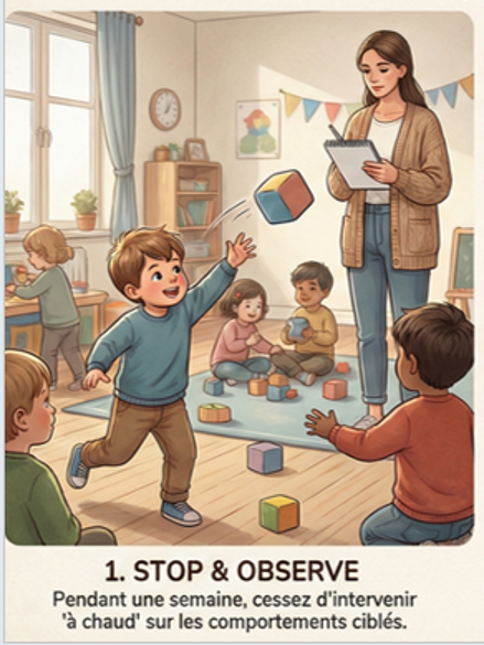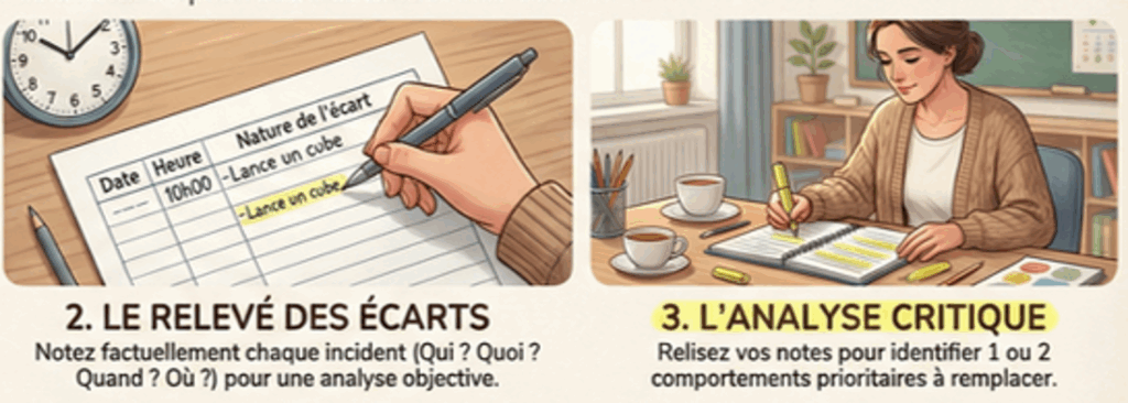 - Désescalade émotionnelle : Le fait de ne plus intervenir “à chaud” pendant une semaine fait baisser la tension et permet à l’enseignant de sortir d’une posture réactive.