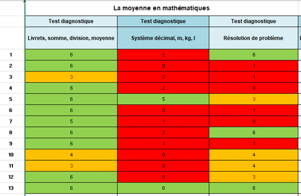 Après ces rappels, les enseignants présents furent invités à effectuer un petit Quizz comportant trois parties. Les évaluations de ces trois parties ont été saisies dans un fichier Excel qui a rendu visible les résultats très satisfaisants (en vert), moyens (en jaune-orange) et insuffisants (en rouge).